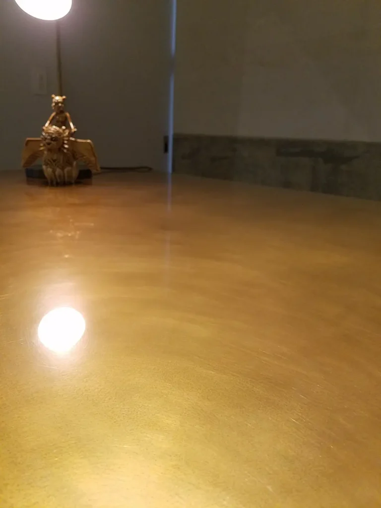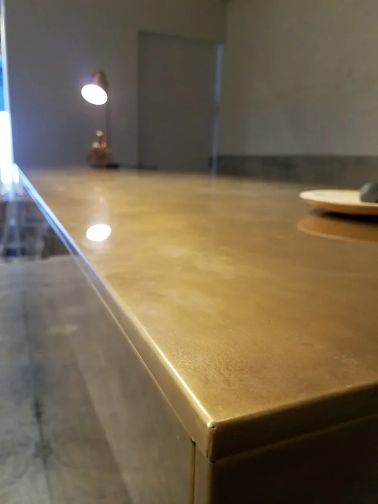 真鍮カウンターの印象を大きく左右するのが表面仕上げです。鏡面仕上げは、ラグジュアリー感を強く打ち出したい空間に適しており、照明との相性も抜群です。一方で、スクラッチやヘアーライン仕上げは、反射を抑え、落ち着いた大人の雰囲気を演出します。